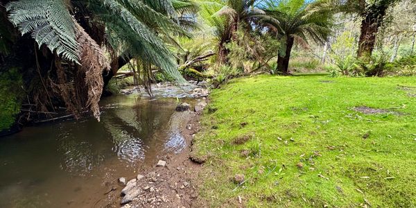 Camp 6 is our largest private campsite. Set within a sheltered valley, this single-booking site features a gentle fern-lined creek running through and is surrounded by towering silver wattles, which bloom golden in spring.