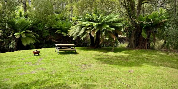 Tucked within temperate rainforest and bordered by a gentle creek, this secluded tent-only site offers space for up to three tents. Just a short walk over a footbridge, it features lush greenery, man ferns, soft festoon lighting, and access to our outdoor cinema and tree swing—a peaceful, nature-filled retreat with a touch of whimsy.